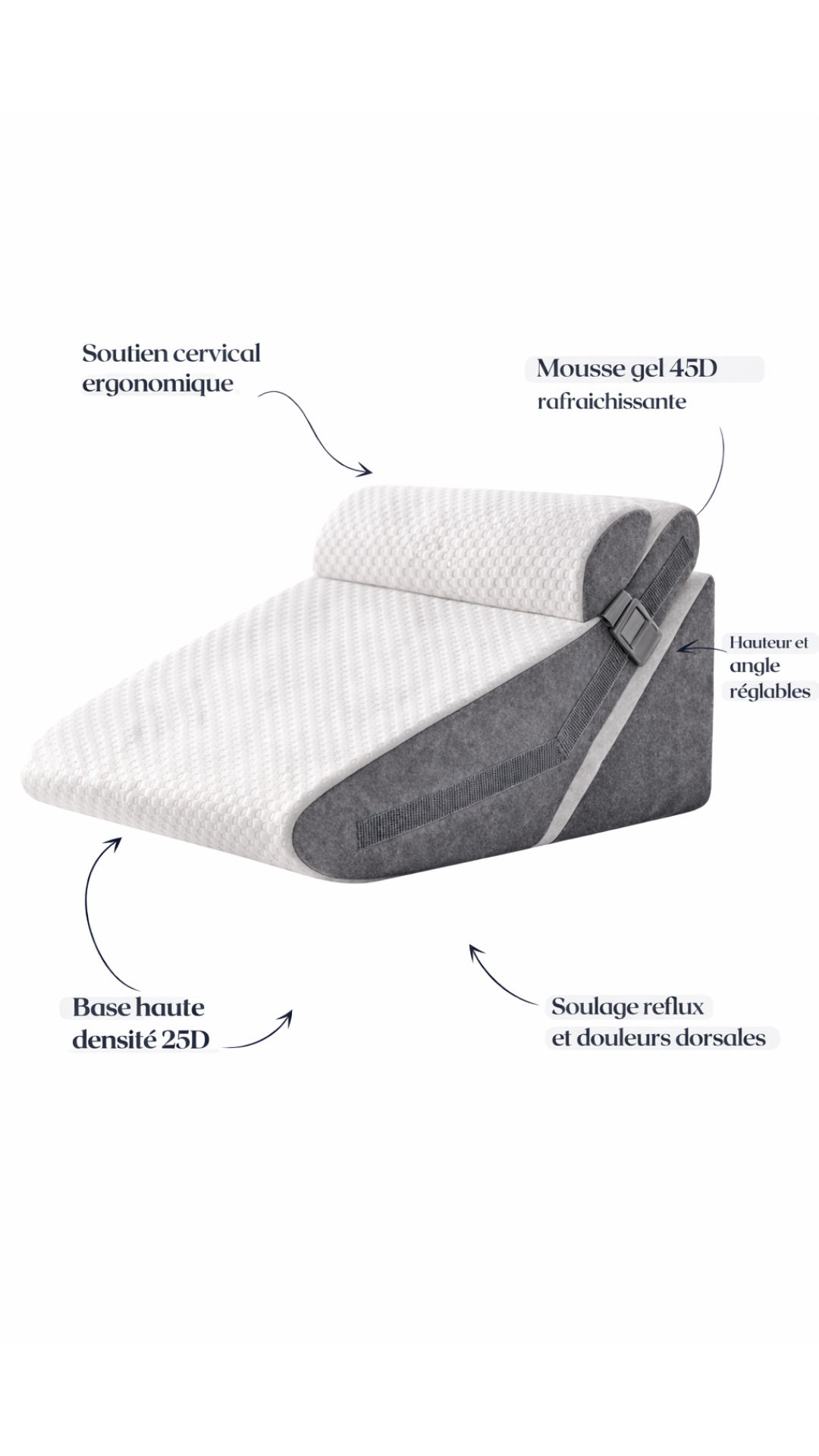 Un temps d’adaptation de quelques jours peut être nécessaire si vous utilisiez auparavant un oreiller classique.